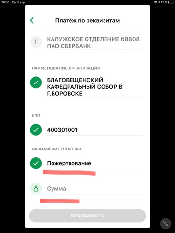 Пожертвования на счёт собора по предлагаемой фотоинструкции