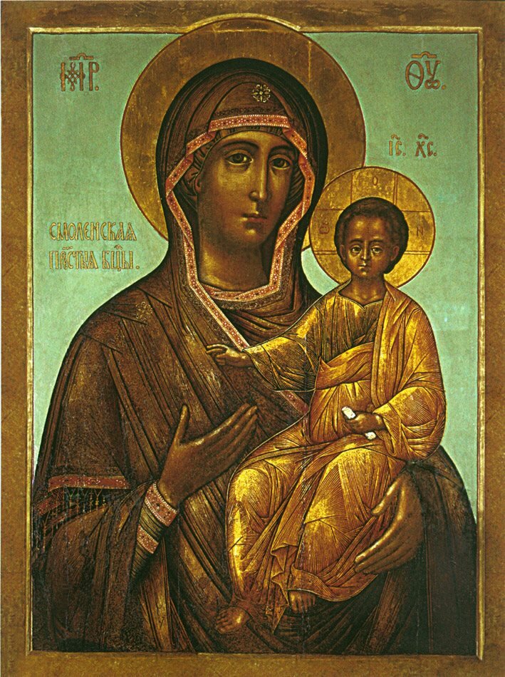 В XII веке сын Всеволода Владимир Мономах перенес эту икону из Чернигова в Смоленск, отчего икона и получила наименование Смоленской. Там она была поставлена в соборном храме в честь Успения Богоматери и там же впоследствии, когда полчища ордынского хана Батыя подступили к Смоленску и намеревались внезапно овладеть городом и разорить его, явила свою чудесную благодатную силу.