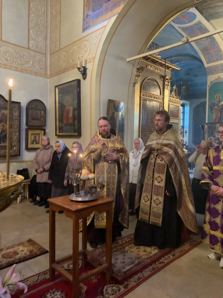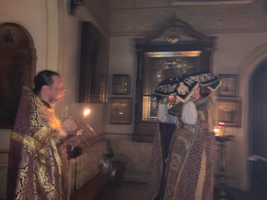 Главной особенностью службы праздника является вынос Креста и поклонение ему. Во время пения хором великого славословия предстоятель выносит Крест, в литургической традиции Благовещенского собора обходит весь храм и перед Царскими вратами, возглашает «Премудрость прости». Далее, при пении тропаря «Спаси Господи люди твоя», крест кладется на середину храма для поклонения, для этого поется особый тропарь: «Кресту Твоему покланяемся, Владыко, и святое воскресение Твое славим». Этот тропарь еще раз подчеркивает неразрывную связь крестных страданий и воскресения Спасителя. После поклонения стоящие в храме прокрадываются ко Кресту и подходят к священнику для помазания.