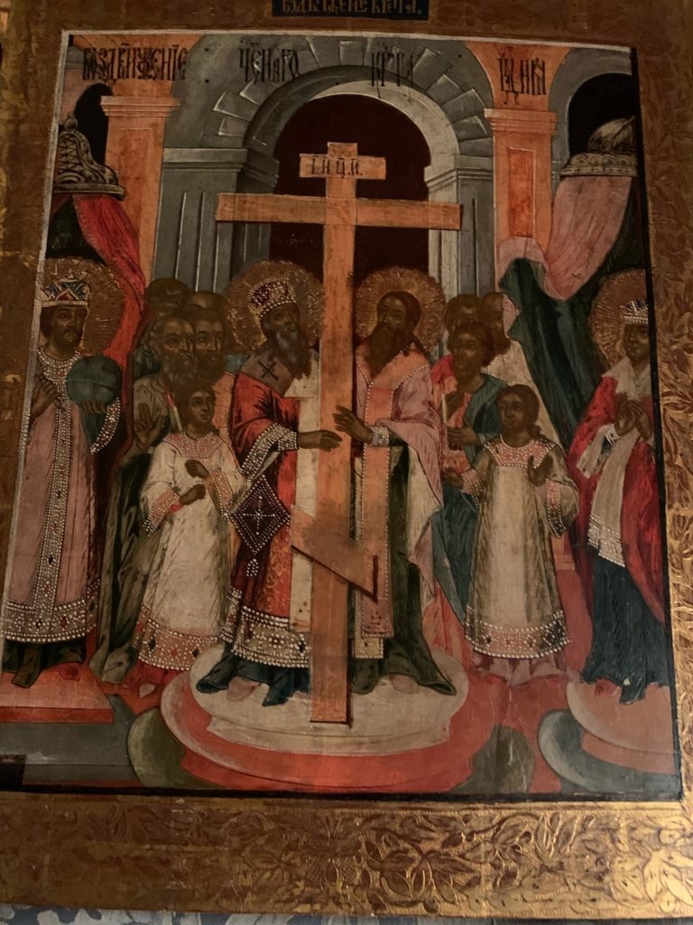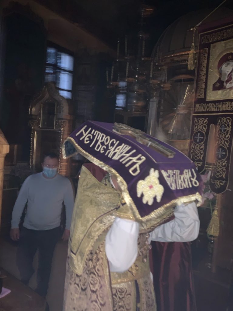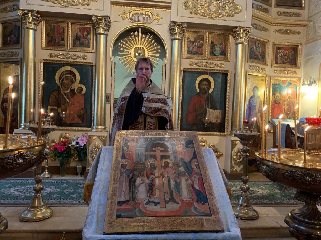 Крест находится на середине храма до отдания праздника, чтобы все желающие могли в любое время приложиться к нему. В день отдания праздника после Литургии Крест заносится обратно в алтарь и полагается на своем месте.
